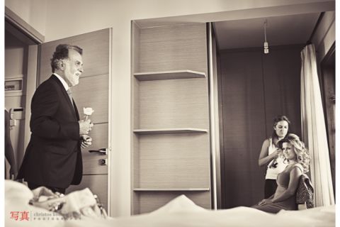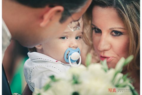 I believe that when the baptism follows right after the wedding, it is easy to lose the magic of the wedding while the attention falls on the child getting baptised. My goal in this case is to remind the couple not to forget their double roles of the day and to depict both roles. Bride and groom, but parents as well.